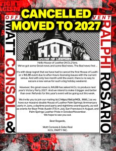 H.O.L (House of Leather) Palm Springs • Leather Pride Weekend